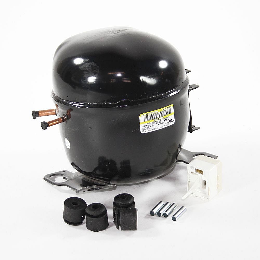 This manufacturer-approved compressor (part number 20505212499) is for wine coolers.Compressor 20505212499 is a positive displacement pump that compresses the refrigerant in the sealed system.A service technician should do this repair because it involves recovering and recharging refrigerant in the sealed refrigerant system. Price: 441.49 |